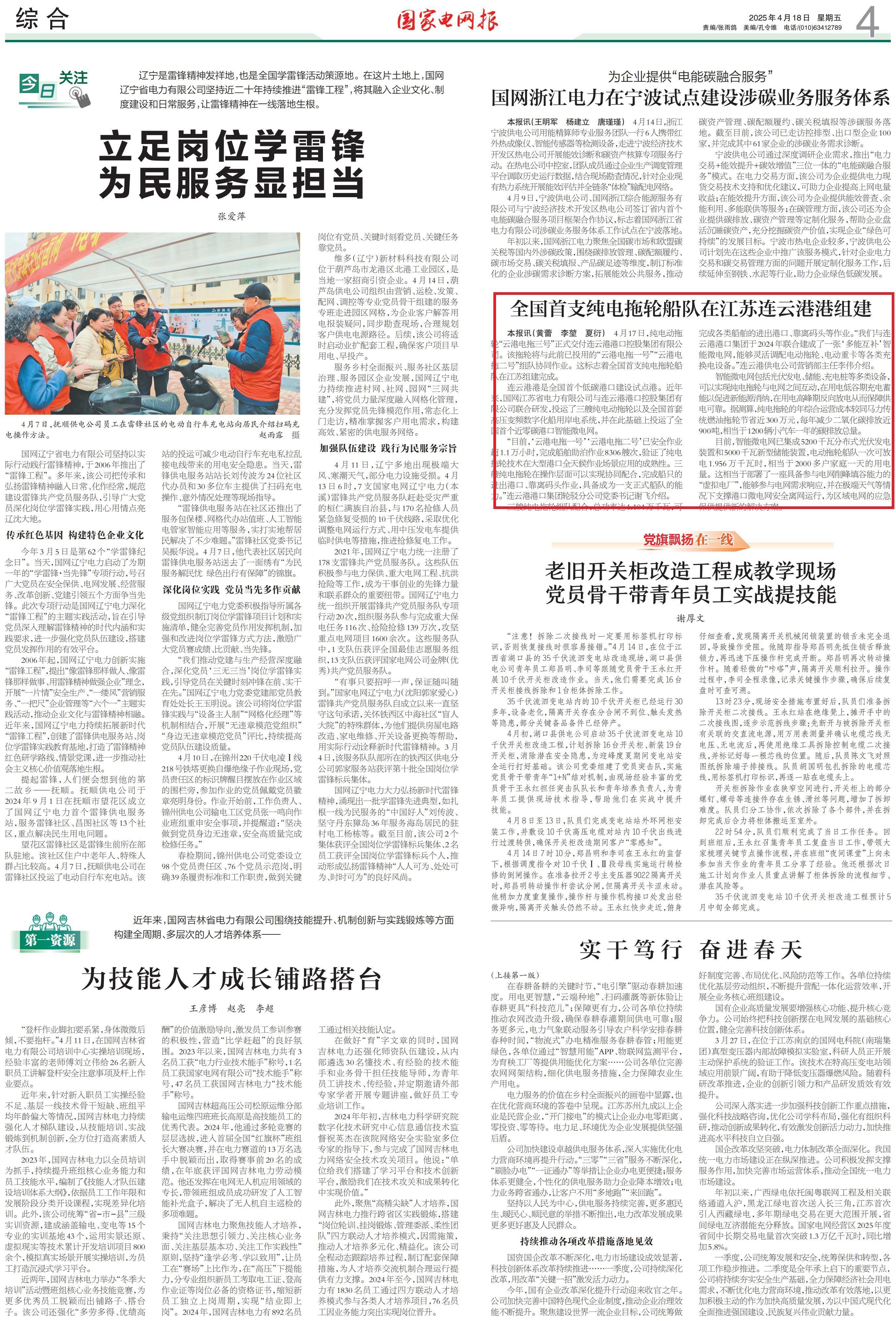 本报讯 4月17日,纯电动拖轮“云港电拖三号”正式交付连云港港口控股集团有限公司。该拖轮将与此前已投用的“云港电拖一号”“云港电拖二号”组队协同作业。这标志着全国首支纯电拖轮船队在江苏组建完成。 连云港港是全国首个低碳港口建设试点港。近年来,国网江苏省电力有限公司与连云港港口控股集团有限公司联合研发,投运了三艘纯电动拖轮以及全国首套高压变频数字化船用岸电系统,并在此基础上投运了全国首个近零碳港口智能微电网。 “目前,‘云港电拖一号’‘云港电拖二号’已安全作业超1.1万小时,完成船舶助泊作业8306艘次,验证了纯电拖轮技术在大型港口全天候作业场景应用的成熟性。三艘纯电拖轮在操作层面可以实现协同配合,完成船只的进出港口、靠离码头作业,具备成为一支正式船队的能力。”连云港港口集团轮驳分公司党委书记谢飞介绍。 三艘纯电拖轮组队配合,总功率达1.104万千瓦,可完成各类船舶的进出港口、靠离码头等作业。“我们与连云港港口集团于2024年联合建成了一张‘多能互补’智能微电网,能够灵活调配电动拖轮、电动重卡等各类充换电设备。”连云港供电公司营销部主任李伟介绍。 智能微电网包括光伏发电、储能、充电桩等多类设备,可以实现纯电拖轮与电网之间互动,在用电低谷期充电蓄能以促进新能源消纳,在用电高峰期反向放电从而保障供电可靠。据测算,纯电拖轮的年综合运营成本较同马力传统燃油拖轮节省近300万元,每年减少二氧化碳排放近900吨,相当于1200辆小汽车一年的碳排放总量。 目前,智能微电网已集成5200千瓦分布式光伏发电装置和5000千瓦新型储能装置,电动拖轮船队一次可放电1.956万千瓦时,相当于2000多户家庭一天的用电量。这相当于部署了一座具备参与电网削峰填谷能力的“虚拟电厂”,能够参与电网需求响应,并在极端天气等情况下支撑港口微电网安全离网运行,为区域电网的应急保供提供新的解决方案。