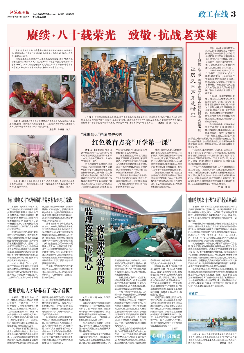 8月31日,连云港市赣榆区抗日山烈士陵园迎来了一群特殊的客人——抗日山小学的同学们和国网连云港市赣榆区供电公司“连心电”志愿者,大家共同体验了一堂难忘的“开学第一课”。这场活动注入了科技的力量,让沉默的碑刻“开口说话”。 抗日山是中国唯一以“抗日”命名的山,安葬着800多位八路军、新四军烈士,是中国共产党最早建立的抗日烈士陵园。然而,历经风雨侵蚀,许多碑文日渐模糊。“碑刻是烽火岁月最真实的见证,数字化保存迫在眉睫。”抗日山管委会主任贺龙广感慨道。 今年,这一难题在赣榆区供电公司与抗日山管委会的共同努力下迎来了突破。“连心电”志愿者团队携高清相机、无人机等专业设备,对碑刻全面开展数字化采集,精准记录每一处历史痕迹。他们认真整理了英雄事迹,制作成AI短视频,并为每段视频生成独立二维码,汇编成《抗日山碑刻》手册。 当日的活动中,志愿者带领孩子们参观纪念馆、瞻仰烈士墓、敬献鲜花,重温抗战岁月,缅怀革命先烈。同学们手持碑刻手册,扫描上面的二维码,一段段鲜活生动的视频跃入眼帘:英雄的坚毅面容、激烈的战斗场景、珍贵的历史细节,借助影像与声音清晰重现,如同一部部微纪录片,将那段峥嵘岁月缓缓呈现。 “以前来扫墓主要是敬礼和献花,这次太不一样了!”抗日山小学学生郑守栋兴奋地说,“扫码就能看视频,像看电影一样,讲烈士们怎么打仗、怎么牺牲的,英雄的故事好像一下子走进了心里。以前不认识碑上的字,感觉烈士离我们很远,现在觉得他们特别真实、特别伟大。” “连心电”志愿者茆峻铭表示,“当碑刻借助科技之力‘开口’,那段岁月便不再冰冷遥远,而成为可感、可触的鲜活叙事。”团队在视频制作和碑刻采集过程中,深入研读史料,大家一次次被英烈精神打动。采用此种方式,不仅是用技术保存历史,更希望以新的表达方式打破传统爱国主义教育的局限,让英雄的故事被看见、被铭记、被传承。