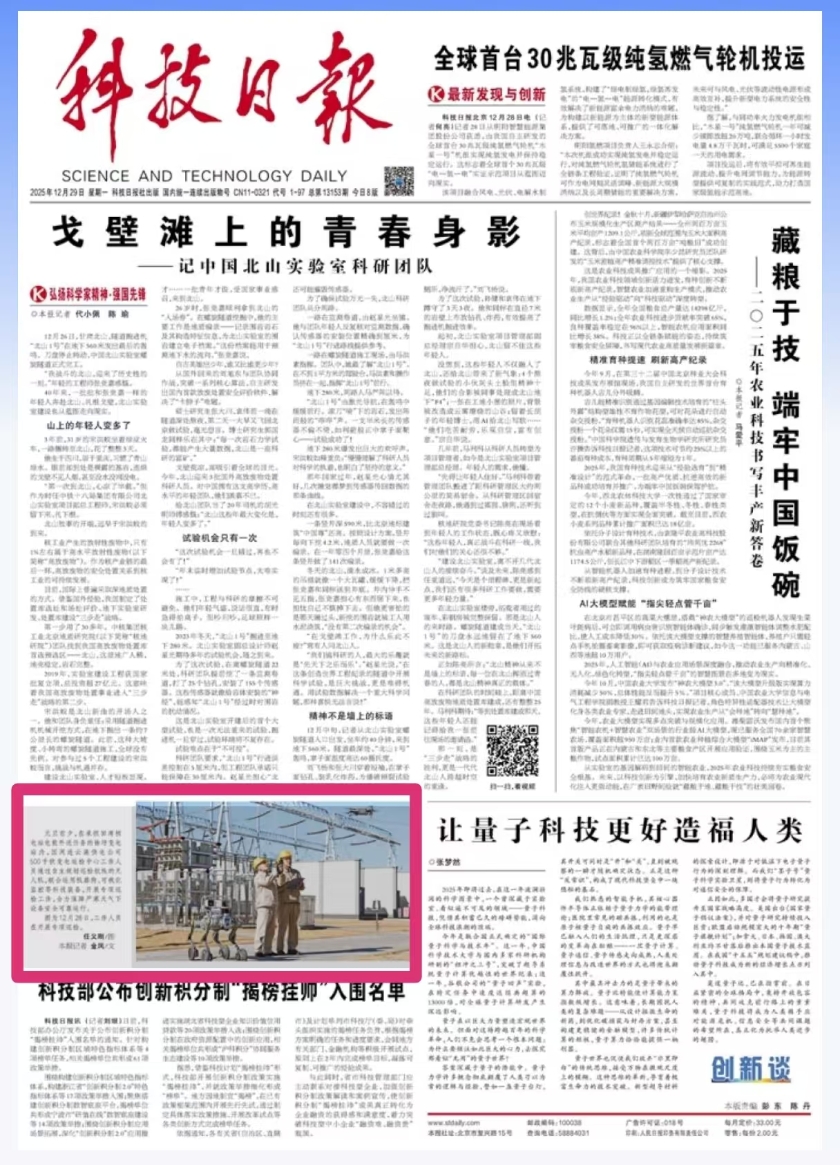 12月29日,科技日报头版刊发图片新闻。报道指出,元旦前夕,在承担田湾核电站电能外送任务的徐圩变电站内,国网连云港供电公司500千伏变电运检中心工作人员通过自主规划巡检航线的无人机,联合运用机器狗、可视化监控等科技装备,开展专项巡检工作,全力保障严寒天气下设备安全可靠运行。