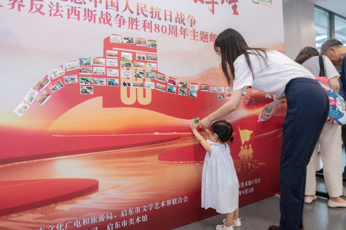 9月2日,一场名为“方寸烽火 邮证辉煌”的主题邮展在启东美术馆开幕。这场展览是启东公司启隆供电所职员陈烽玮为纪念中国人民抗日战争暨世界反法西斯战争胜利80周年而精心策划的。 展览入口处,别出心裁的签到墙让每位参观者用邮票共同贴成一幅长城图案——这是写给先烈的“山河信”,也是跨越时空的敬意。 陈烽玮是一位痴迷集邮40余载的爱好者,收集邮票近两万枚。他坚信尽管集邮是一件传统又古老的爱好,但方寸邮票却能于方寸间记录万千世界。他的集邮生涯始于七八十年代。当时他加入部队远赴福建,与家人依靠书信往来。那个时代车马慢,一封书信字字珍贵,却承载着所有情感。 退伍后,他通过书信与战友互诉生活,邮票成了他半生故事的见证者。过去十年里,陈烽玮在工作之余举办了30多个大小邮展,主题各不相同。他投入大量闲暇时间收集、整理、装裱和布置,虽然一道道工序都十分繁琐,但看着每一次邮展的成功举办,让人们感受到邮展的魅力,陈烽玮觉得十分值得。 为纪念抗战胜利80周年,本次邮展别具匠心。陈烽玮将邮展划分成45个板块,7大主题5。2000多枚邮票加上纪念封、实寄封,每个板块都精心装裱,用文字注释,形成一条历史长廊。展览内容丰富多样,包括毛泽东、朱德、刘少奇、陈毅等伟人画像邮票,展示了带领中国共产党走向胜利的领袖人物。还有卢沟桥风云、平型关大捷、淞沪会战等重要战役邮票,系统回顾了中国人民艰苦卓绝的革命斗争史。 邮票作为历史的见证者,详细记录了抗战的艰辛历程。从1938年晋察冀边区发行的抗战军人邮票,到2025年9月3日推出的《中国人民抗日战争暨世界反法西斯战争胜利八十周年》纪念邮票,这跨越八十七载的方寸天地,将抗战珍贵历史瞬间永远定格。 陈烽玮展出的邮票中,有1995年发行的《抗日战争及世界反法西斯战争胜利五十周年》纪念邮票,将1937年7月7日至1945年9月2日的历史全貌浓缩为一部视觉史诗。 “如今的国泰民安,是先烈们用身躯和鲜血换来的,”陈烽玮郑重地说,“大好山河,寸土不让。铭记历史,吾辈自强。” 邮展尽头,一片空地上仿佛有余温留存,那是后来者即将续写的历史。山河无恙,人间皆安,先烈的血染就了今日的繁华。 方寸邮票,铭记着永恒的历史。这封用邮票贴成的“山河信”已经寄出,等待回响。它不仅是对抗战英灵的告慰,也是对后人的警示和教育,提醒人们珍惜和平,铭记历史,共创未来。