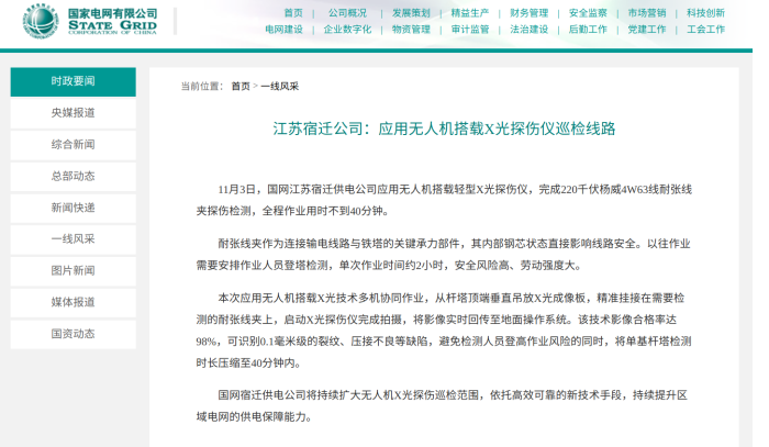 11月3日,国网江苏宿迁供电公司应用无人机搭载轻型X光探伤仪,完成220千伏杨威4W63线耐张线夹探伤检测,全程作业用时不到40分钟。 耐张线夹作为连接输电线路与铁塔的关键承力部件,其内部钢芯状态直接影响线路安全。以往作业需要安排作业人员登塔检测,单次作业时间约2小时,安全风险高、劳动强度大。 本次应用无人机搭载X光技术多机协同作业,从杆塔顶端垂直吊放X光成像板,精准挂接在需要检测的耐张线夹上,启动X光探伤仪完成拍摄,将影像实时回传至地面操作系统。该技术影像合格率达98%,可识别0.1毫米级的裂纹、压接不良等缺陷,避免检测人员登高作业风险的同时,将单基杆塔检测时长压缩至40分钟内。 国网宿迁供电公司将持续扩大无人机X光探伤巡检范围,依托高效可靠的新技术手段,持续提升区域电网的供电保障能力。 稿件来源:国网网站 一审一校:黄怡 二审二校:孟飞 三审三校:吕海侠