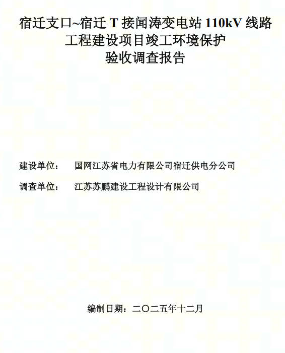 宿迁支口~宿迁T接闻涛变电站110kV线路工程环保验收报告