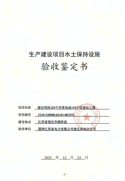 宿迁利民220千伏变电站110千伏送出工程水保设施验收鉴定书