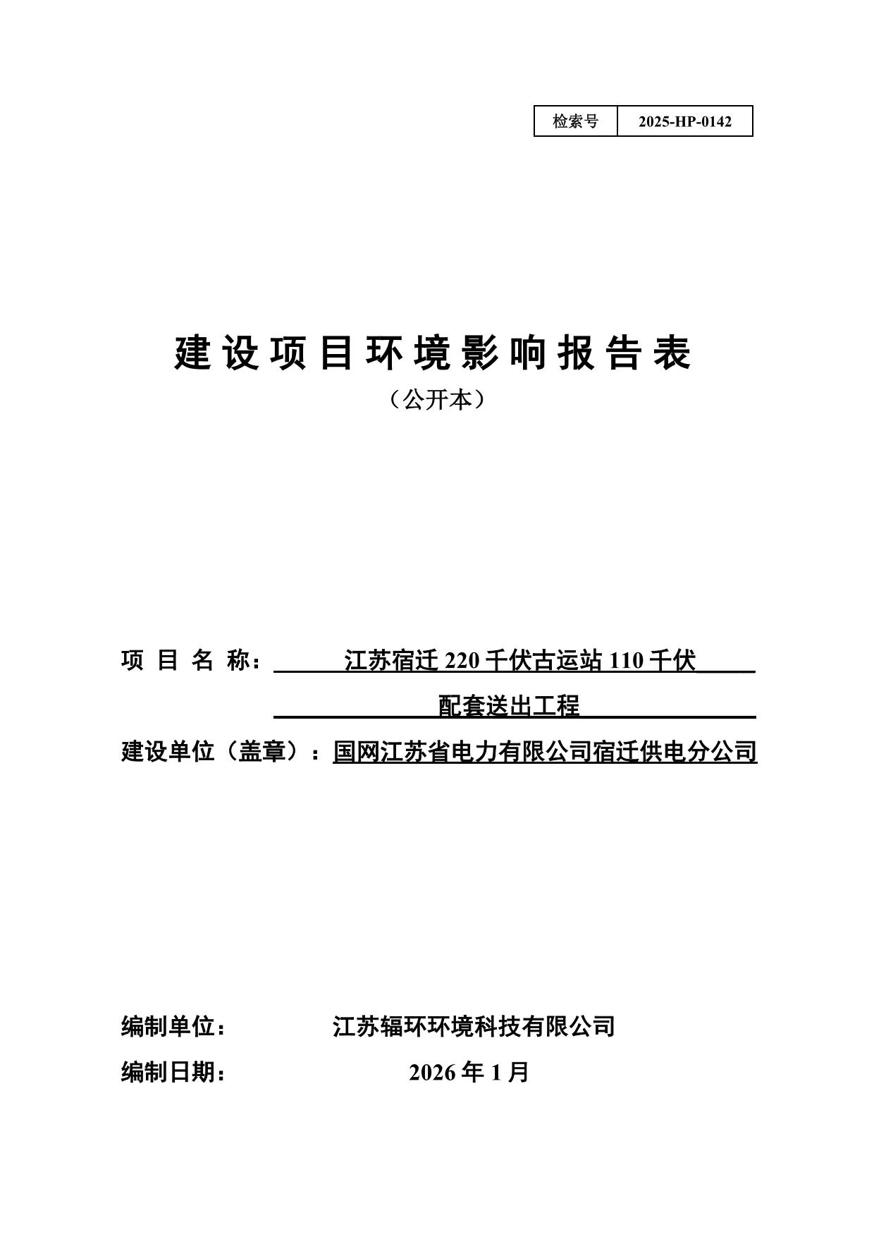 江苏宿迁220千伏古运站110千伏配套送出工程环境影响报告表