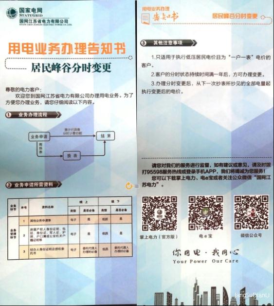 居民峰谷分时变更用电业务办理告知书