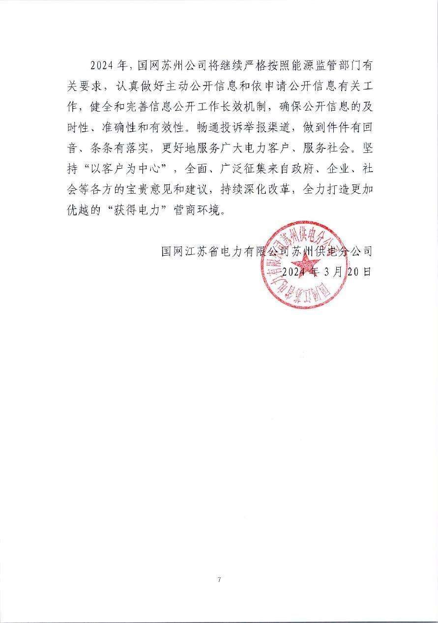 2023年苏州供电公司企业信息公开年报