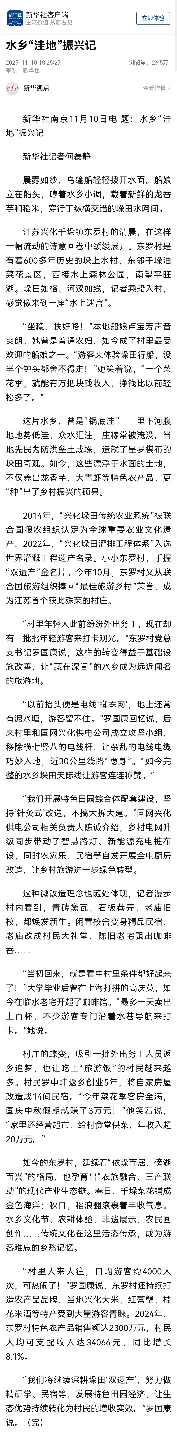 新华社:水乡“洼地”振兴记