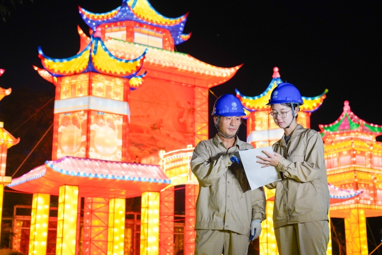 【编者按】金秋送爽,双节同庆。当万家灯火映照着团圆笑脸,当锡城大地洋溢着节日欢歌,公司的广大员工却坚守在保电一线,以责任担当守护光明暖意。镜头下的每一个身影,都是这个假期里最动人的风景。 10月1日,三新公司台区经理蒋炘晔(左)和徐介新(右)在拈花湾景区内进行设备检查。(陈天淇 摄) 10月1日,惠山分部二班班员程建东操作无人机对10千伏中芋线进行精细化巡检,重点排查绝缘子、配电变压器等关键设备的运行状态。(华杰 摄) 10月1日,10千伏高庄线6号杆A6579开关发生故障,江阴公司不停电作业中心带电作业二班李文明、牟鹏在现场开展带电抢修,顺利清除线路故障。(张卅 摄) 10月1日,在220千伏扬名变电站110千伏线路改造工程现场,项目中心工作人员正在操作吊车吊装实验套管进GIS室。(袁娟 摄) 10月1日凌晨,变运中心运维值班员郝俊杰对江溪变电站110千伏江新71J间隔进行方式复常操作,检查闸刀实际位置是否到位。(周心韵 摄) 10月1日,在500千伏梅木5275线检修工作现场,输电中心输电运检六班班长潘继华(左)、施工单位工作负责人王永(右)紧盯高空作业每个环节,确保检修作业全流程安全可控。(孔祥光 摄) 10月1日,梁溪分部营业厅客户受理员范静为客户分析家庭用电情况,并提供家庭节能建议。(冯瑜 摄) 10月1日,综合能源公司工程安全部的新能源电气设备运维工作人员张文权(左)、胡辉(右)对目前在运营光伏电站开展安全巡检工作。(周钰 摄) 10月2日,在500千伏梅里变电站,500千伏变电运检中心检修人员谢子豪(左)、张宗扬(右)正在进行5072开关小修预试工作。(徐芯晔 摄) 10月2日,滨湖分部低压客户经理张晓东(左)、赵莹莹(右)对梅园金秋灯会进行用电检查,确保节日期间景区可靠稳定用电。(邓梦沁 摄) 10月2日,新能源公司项目与安全管理华陈君(左)和工程班班长张志伟(右)在无锡市民中心开展光伏车棚组件更换作业。(秦婕 摄) 10月2日上午,在扬名变电站110千伏73M间隔,电建公司施工人员胡炜(左)、徐纲(右)配合进行抽真空工作。(邢力 摄) 10月1日至3日,供指中心配抢班充分做好应急预案,研判分析汇总各类中低压故障,共办结中压线路故障6条,95598抢修工单180张。(徐苏宁 摄) 10月3日,电缆中心运检一班技术员周宇丰(左)、线路负责人张懿涛(右)组织开展一级保电线路220千伏溪新2538线的特巡工作,重点排查电缆终端以及避雷器、可视化摄像头等设备的运行情况。(徐莉 摄) 10月3日,物业公司梁溪服务班运维人员朱健(左)、石志武(右)在科技大楼开展顶棚防护作业。(张天慧 摄) 10月4日,新吴公司新区营业厅值班业务受理员陶莉在智能引导台前为前来办理业务的用户详细介绍相关业务内容与办理流程,并现场耐心解答用户各类疑问。(陆柯阳 摄) 10月1日至8日,宜兴公司不停电作业中心每天安排5名值班人员,在不停电作业管控中心开展运维监控服务,确保第一时间应急响应并开展现场抢修工作。(张天成 摄)