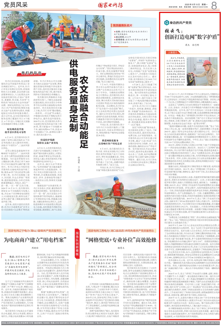 9月15日《国家电网报》刊发《张云飞:创新打造电网“数字护盾”》