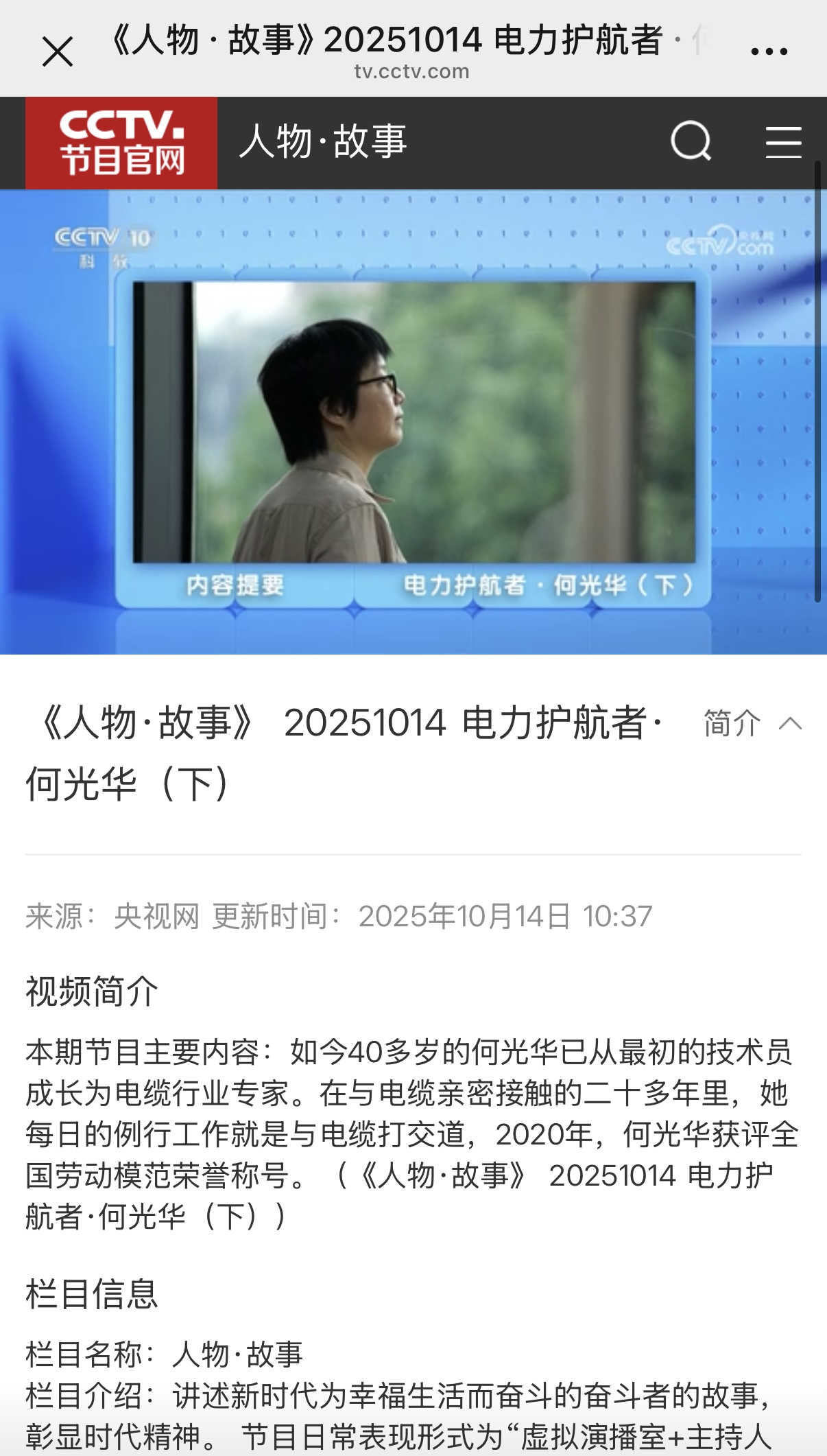 10月14日 央视播发《人物·故事20251014电力护航者·何光华(下)》