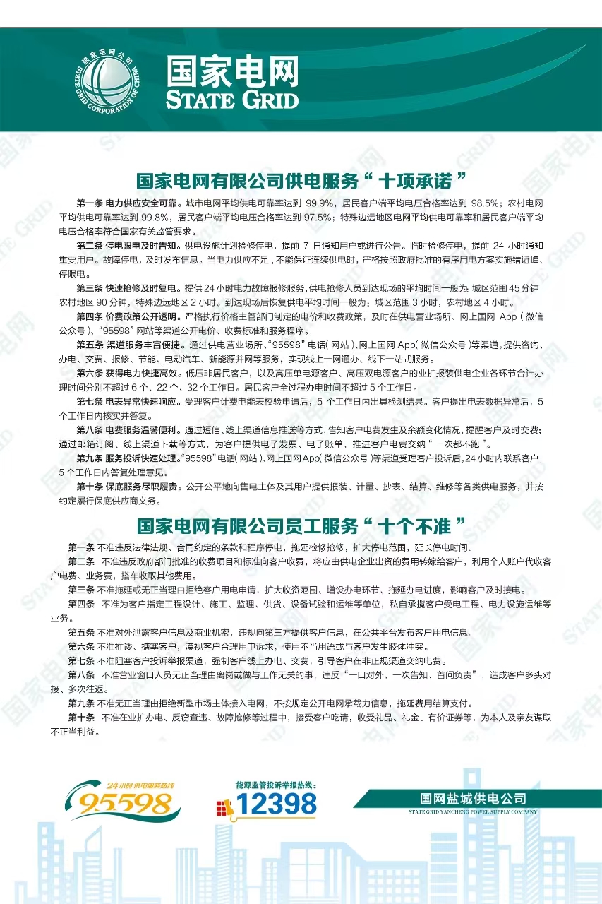 国家电网公司员工“十个不准”“十项承诺”