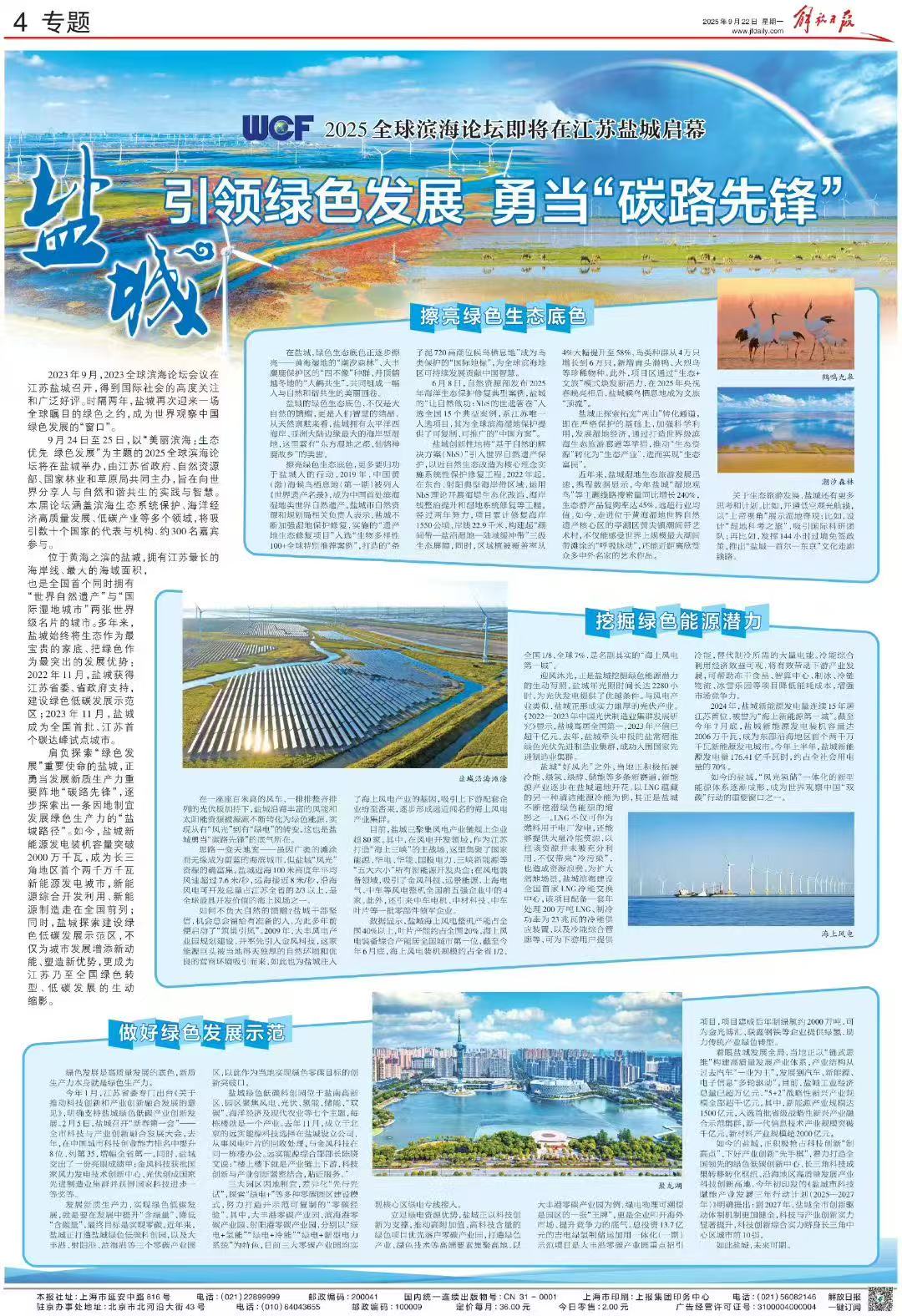 解放日报:盐城引领绿色发展 勇当“碳路先锋”